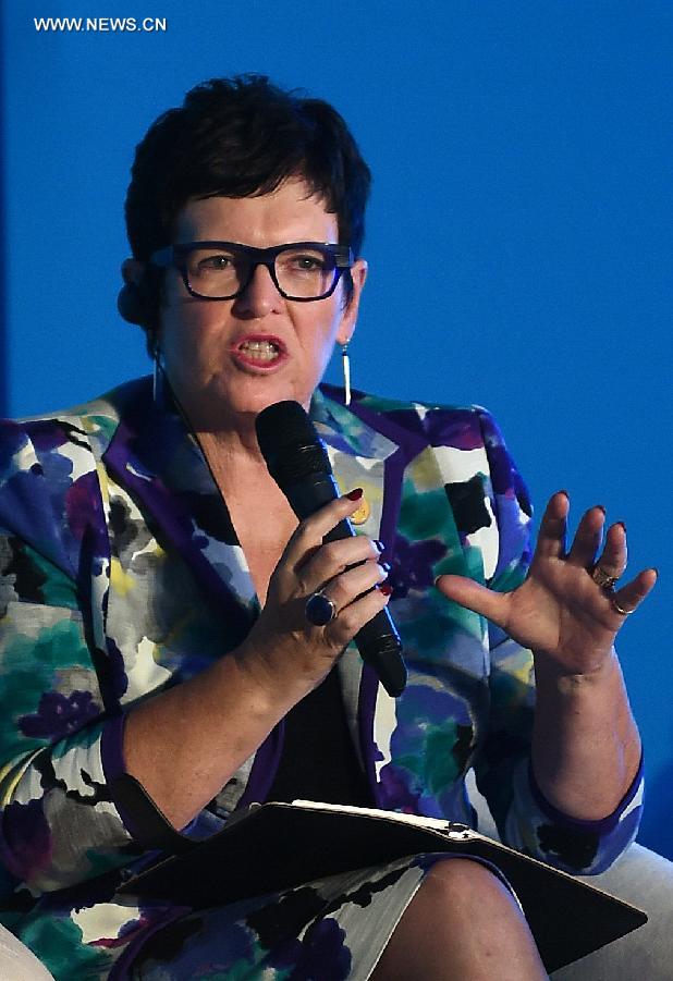 Jenny Shipley, former prime minister of New Zealand, speaks during a sub-forum with the theme of "Asian Infrastructure Investment Bank (AIIB) and the New Development Bank" at the 2015 Boao Forum for Asia (BFA) in Boao, south China's Hainan Province, March 28, 2015. (Xinhua/Guo Cheng)