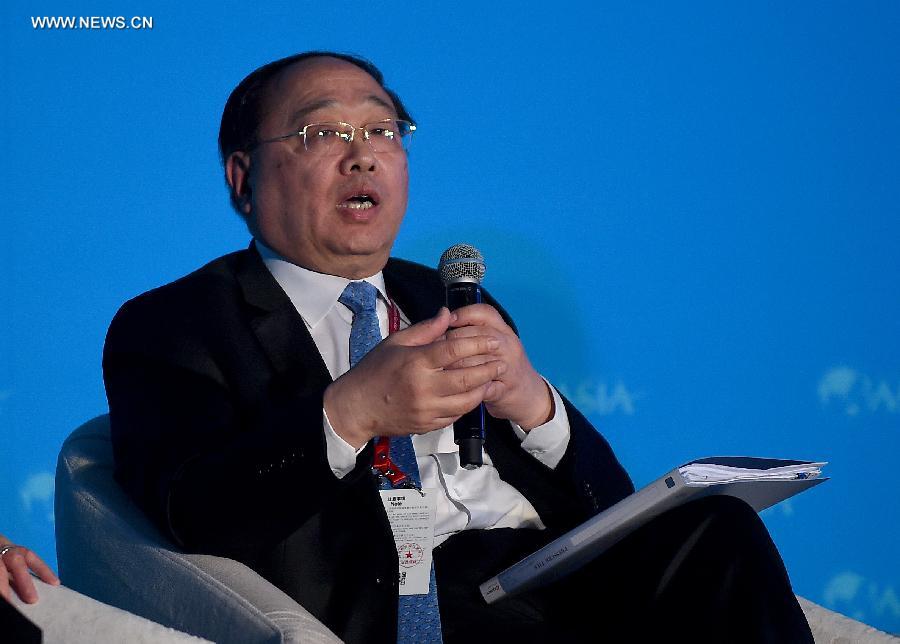 Former Chairman and President of Export-Import Bank of China Li Ruogu speaks during a sub-forum with the theme of "Asian Infrastructure Investment Bank (AIIB) and the New Development Bank" at the 2015 Boao Forum for Asia (BFA) in Boao, south China's Hainan Province, March 28, 2015. (Xinhua/Guo Cheng)