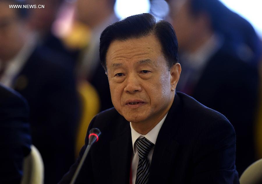 | Founder and Chairman of Shimao Group Hui Wing Mau speaks at an overseas Chinese business roundtable during the 2015 Boao Forum for Asia (BFA) in Boao, south China's Hainan Province, March 29, 2015. (Xinhua/Guo Cheng) |
