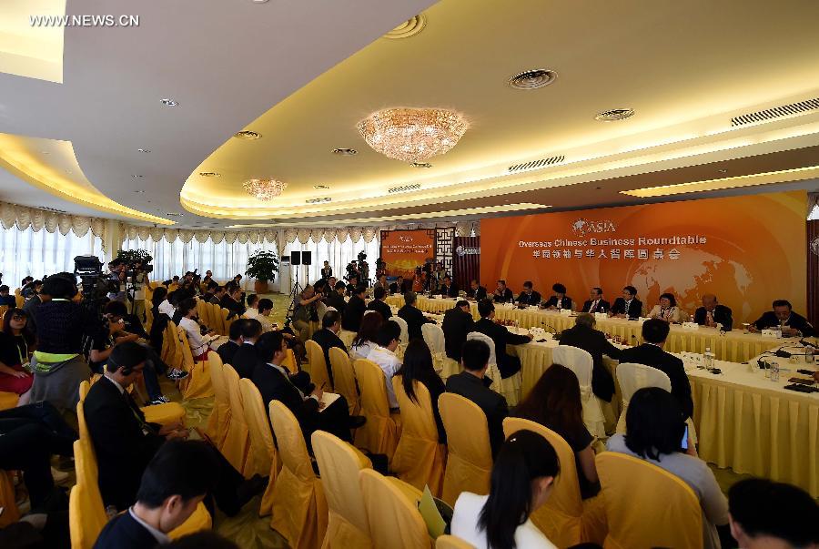 An overseas Chinese business roundtable is held during the 2015 Boao Forum for Asia (BFA) in Boao, south China's Hainan Province, March 29, 2015. (Xinhua/Guo Cheng)