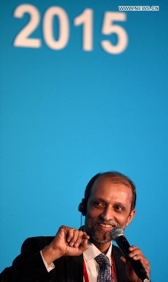 Ajit Ranade, chief economist of Aditya Birla Group, speaks at the sub-forum with the theme of "India: Resetting the Reform Agenda" during the 2015 Boao Forum for Asia (BFA) in Boao, south China's Hainan Province, March 28, 2015. (Xinhua/Guo Cheng)