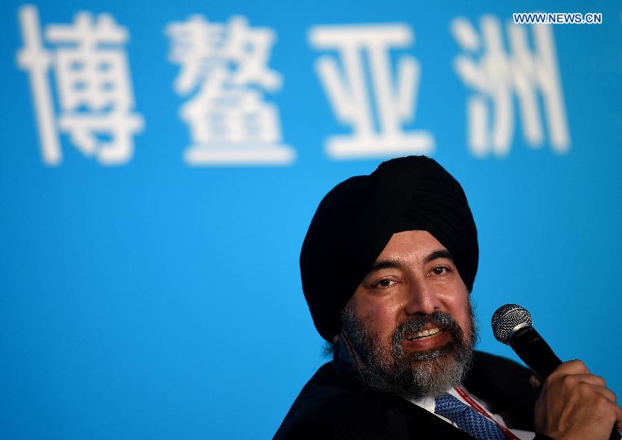 Jaspal Singh Bindra, group executive director of Standard Chartered, speaks at the sub-forum with the theme of "India: Resetting the Reform Agenda" during the 2015 Boao Forum for Asia (BFA) in Boao, south China's Hainan Province, March 28, 2015. (Xinhua/Guo Cheng)