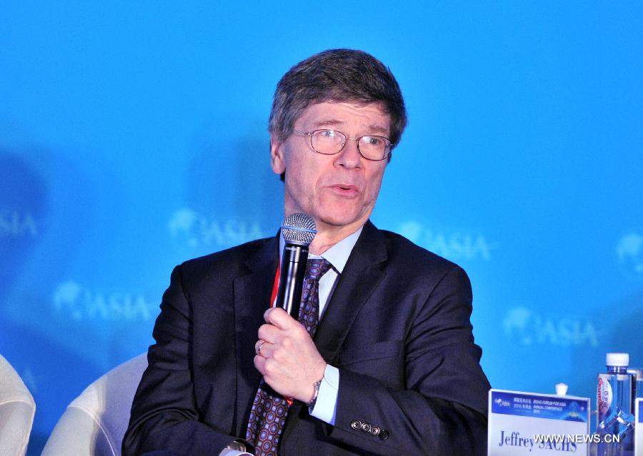 Jeffrey Sachs, director of the Earth Institute at Columbia University, speaks at the sub-forum with the theme of "What's the Next Move on Unconventional Monetary Policies?" during the 2015 Boao Forum for Asia (BFA) in Boao, south China's Hainan Province, March 29, 2015. (Xinhua/Yang Guanyu)