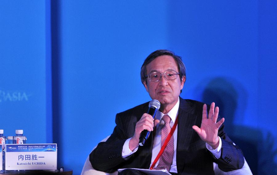 Katsuichi Uchida, Vice-President for International Affairs of Waseda University, speaks at a sub-forum with the theme of "University Presidents' Dialogue: The Future of Education" during the 2015 Boao Forum for Asia (BFA) in Boao, south China's Hainan Province, March 29, 2015. (Xinhua/Yang Guanyu)