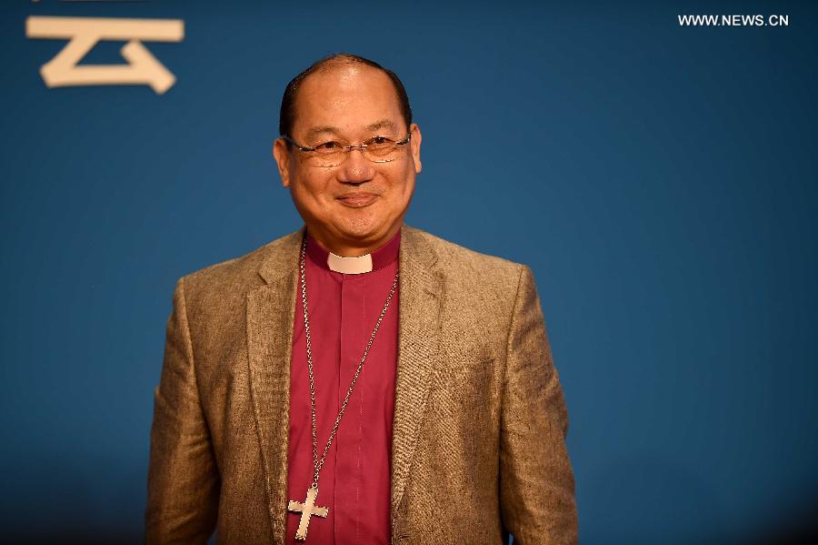 | Paul Kwong, Archbishop of the Hong Kong Sheng Kung Hui (Anglican), speaks during a TV debate session themed on "Peace & Harmony: the Enlightenment of Religions" of the 2015 Boao Forum for Asia (BFA) in Boao, south China's Hainan Province, March 29, 2015. (Xinhua/Guo Cheng) |