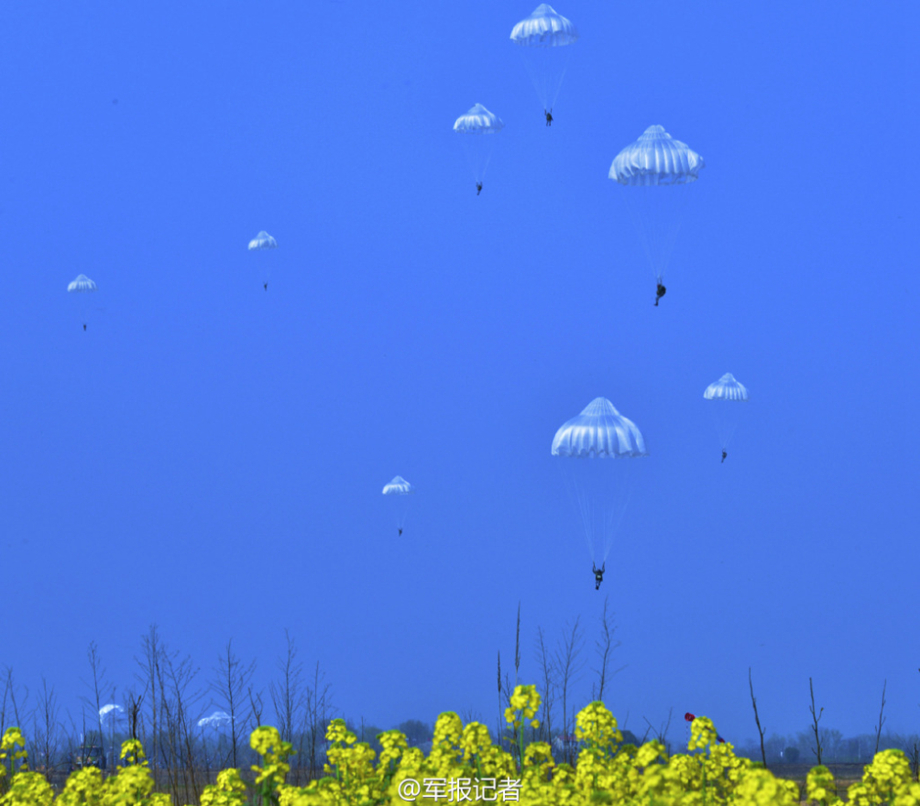 On March 21, 2015, an airborne troop conducted parachuting training. After four hours of flying, hundreds of paratroopers landed in a valley in northern Hubei province in central China.(81.cn/Photo)