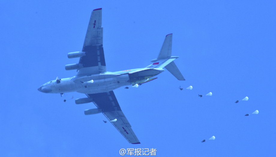On March 21, 2015, an airborne troop conducted parachuting training. After four hours of flying, hundreds of paratroopers landed in a valley in northern Hubei province in central China.(81.cn/Photo)
