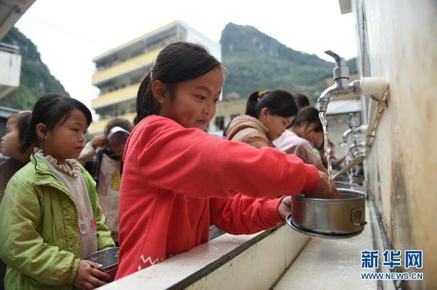 Students do the washing-up after lunch on Nov. 12, 2014. (Xinhua/Huang Xiaobang)