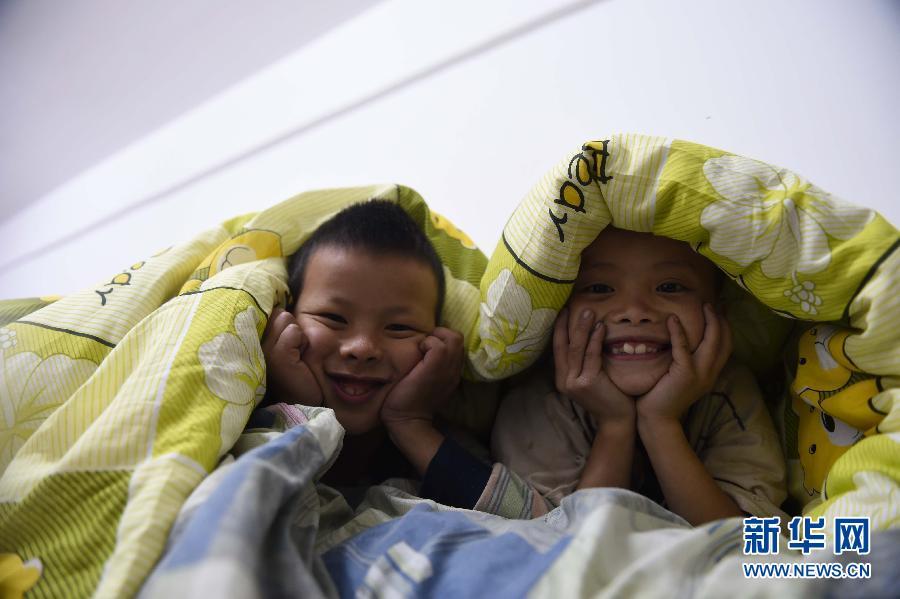 Two students covered with new quilts on Jan, 7, 2015. (Xinhua/Huang Xiaobang)