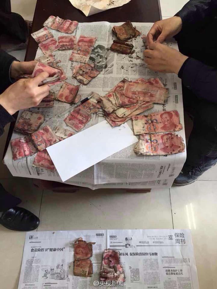 For fear of being stolen, Sun Daozhong, a waste picker in Yuncheng, northern China's Shanxi province, put more than 10,000 yuan into a glass bottle and buried them 10 years ago. But Sun could not figure out the exact location where he buried that money after a long period of time. Finally Sun dug out the banknotes but some of them had gone mouldy. Fortunately, after identification, Sun got all the 10,750 yuan from a bank.