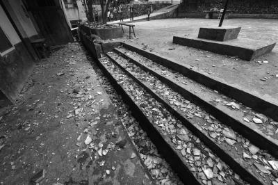 | Debris on the ground after a 5.5-magnitude earthquake struck Xinliu Primary School, close to Nanjia Township, southwest China's Guizhou Province on Monday morning. (Photo/Xinhua) |