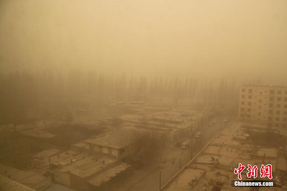 Photo shows that the sand storm hits Dunhuang City, northwest China's Gansu Province on March 31, 2015. (Photo source:chinanews.com)