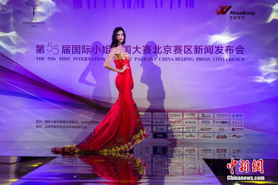The press conference for the 55th Miss International Pageant China was held in Beijing on March 30, 2015. The Pageant will begin in April and a series of activities about city culture, tourism and environment protection will be held. Models performed catwalk show at the press conference. (Chinanews.com/Jin Shuo)