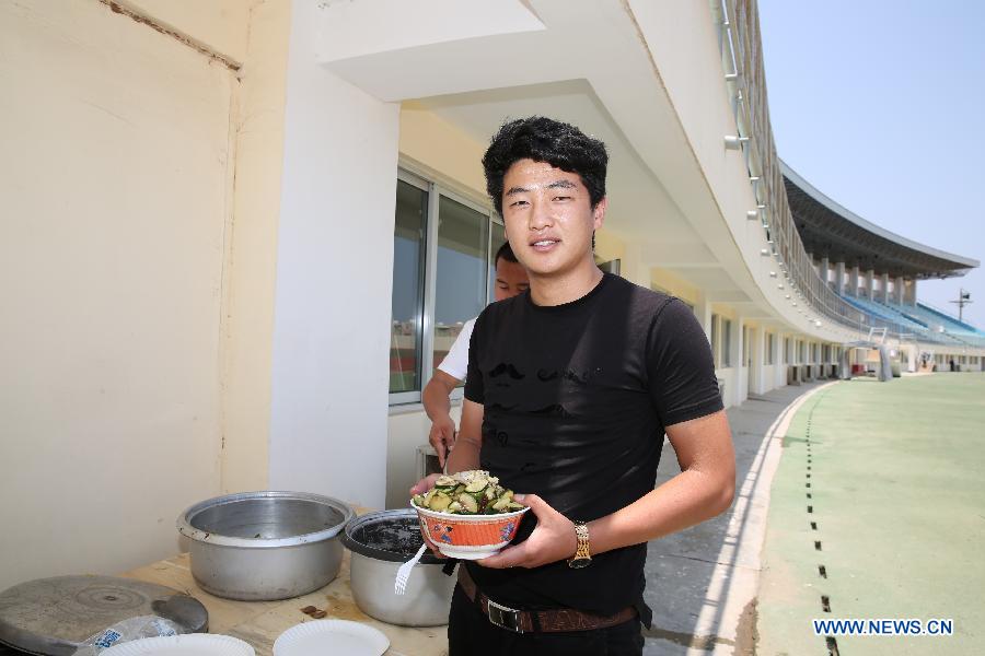 A Chinese evacuee holds his lunch meal at the temporary rest center in Hassan Gouled in Djibouti, March 31, 2015. More than 500 Chinese evacuees from conflict-ridden Yemen have arrived at the Djibouti port as the situation continues to deteriorate in Yemen. (Xinhua/Pan Siwei)