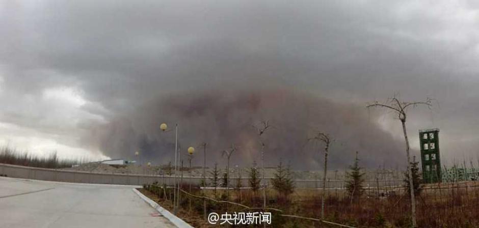 A sandstorm hits Golmud, northwest China's Qinghai province on March 31, 2015. (Photo source/Macroblog of CCTV))