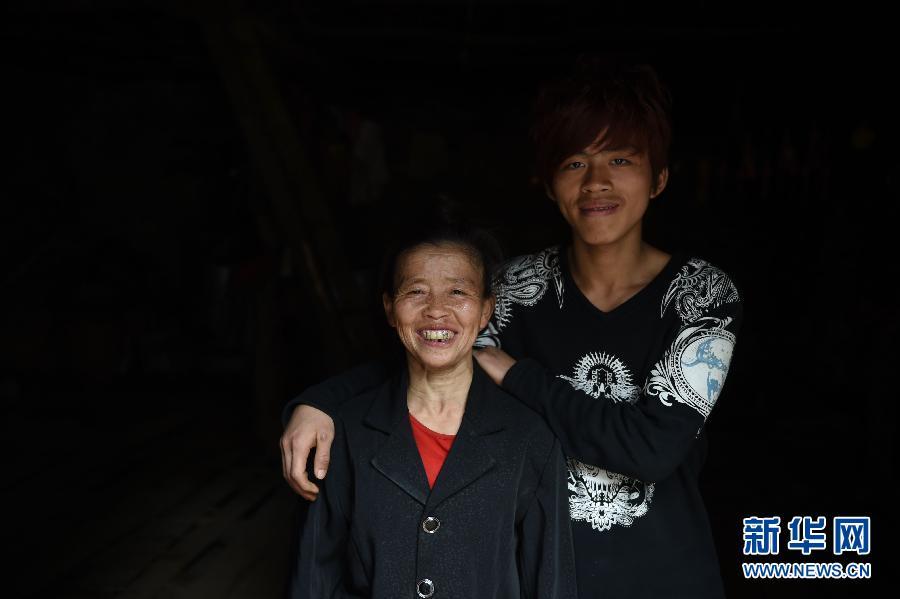 Meng Jicheng, 22, takes photos with his mother. (Xinhua/Huang Xiaobang)