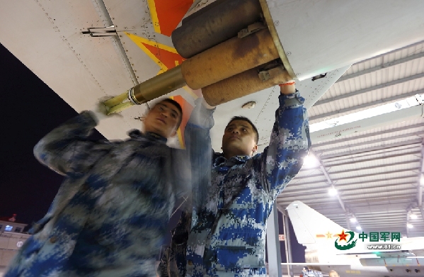 An aviation regiment under the air force of the Jinan Military Area Command (MAC) of the Chinese People's Liberation Army (PLA) conducted bombing and shooting training with live-ammunition on the late night of March 30, 2015.