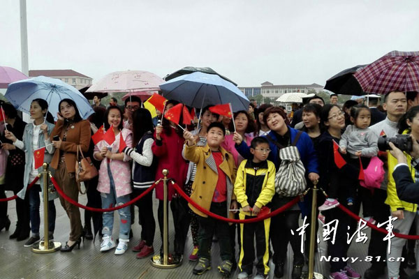 Family members of the naval officers and men are seen at a send-off ceremony held at a military port in Zhoushan, east China's Zhejiang province on April 3, 2015.The 20th Chinese naval escort taskforce departs from a military port in Zhoushan, east China's Zhejiang province, and head for the Gulf of Aden and waters off Somali coast on the morning of April 3, 2015, to take over the escort mission from the 19th escort taskforce.(Photo: Chinamil.com.cn/Dai Zongfeng)
