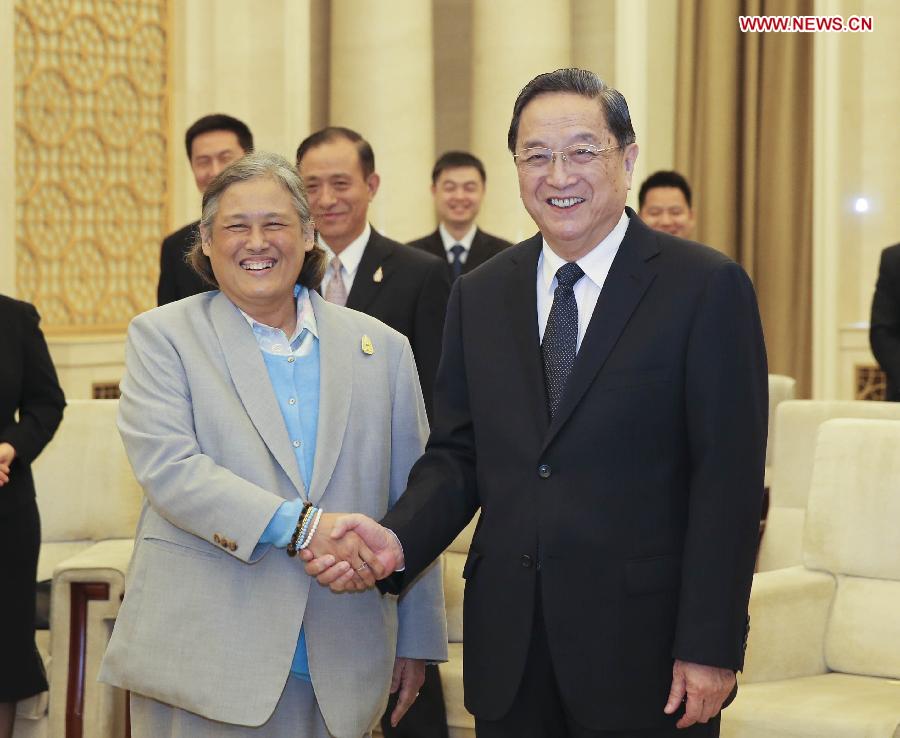 BEIJING, April 3 -- China's top political advisor, Yu Zhengsheng, met with visiting Thai crown princess Maha Chakri Sirindhorn in Beijing on Friday.