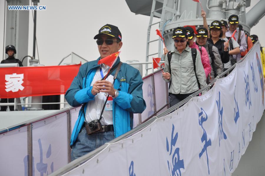 | Chinese nationals who are evacuated from Socotra of restive Yemen disembark from Chinese navy ship Weishanhu at the port of Salalah, southern city of Oman, April 7, 2015. Chinese navy ship Weishanhu carring 9 Chinese nationals and one Japanese evacuated from restive Yemen arrived at Oman's Salalah port on Tuesday morning. (Xinhua/Sun Lei) |