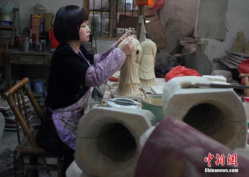 A worker makes a Buddha statue. (CNS/Li Qing)