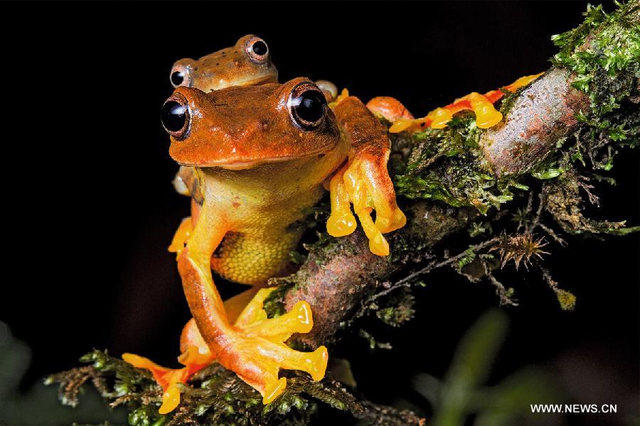 This is a photo of red-webbed tree frog taken by photographer Fan Yi. China's first nature image record named "The Beauty of Nature - Nature & Wildlife Photography in China" was released recently, which includes the essence of the 63 programs IBE (Imaging Biodiversity Expedition) has researched on in the six years since it was founded. IBE, founded in 2008, is an institute which aims to record the nature in China by using imaging biodiversity expedition. (Xinhua/Fan Yi)