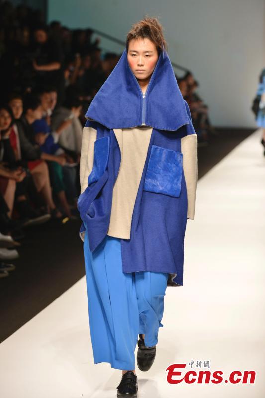 A model presents a creation during Shanghai Fashion Week Fall/Winter 2015 in Shanghai, April 8, 2015. Nearly 50 shows will be held in the important fashion event from April 8 to 15, featuring both Chinese and international brands. (Photo: China News Service/Yuan Jing)