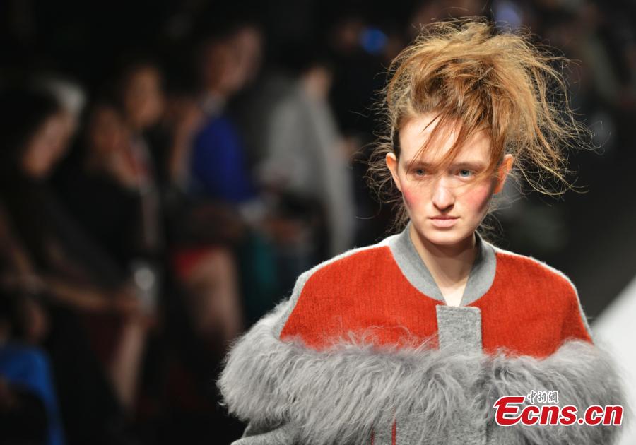 A model presents a creation during Shanghai Fashion Week Fall/Winter 2015 in Shanghai, April 8, 2015. Nearly 50 shows will be held in the important fashion event from April 8 to 15, featuring both Chinese and international brands. (Photo: China News Service/Yuan Jing)