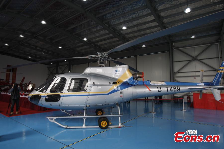 A helicopter is stored in a hangar in Ningbo, East China’s Zhejiang province, April 8, 2015. The city has China’s first 5S dealer for aircrafts. 5S refers to a dealer that offers sales, survey, spare parts, service and supplements in the same place. (Photo: China News Service/Lin Bo)