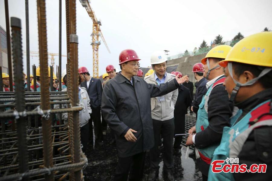 Premier Li Keqiang (L) visits the construction site of a transportation hub in Changchun, the capital of Northeast China’s Jilin province, April 9, 2015. Li emphasized the important role of investment in driving up the economy. (Photo: China News Service/Liu Zhen)