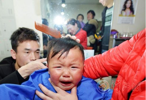 | Photo shows a boy having haircut on March. 21, 2015. The day was the traditional Dragon Heads-raising Day which falls on the second day of the second lunar month. In Xiangyang, people have the tradition to have a haircut and eat dumplings on the day. (Photo provided to People's Daily Online) |