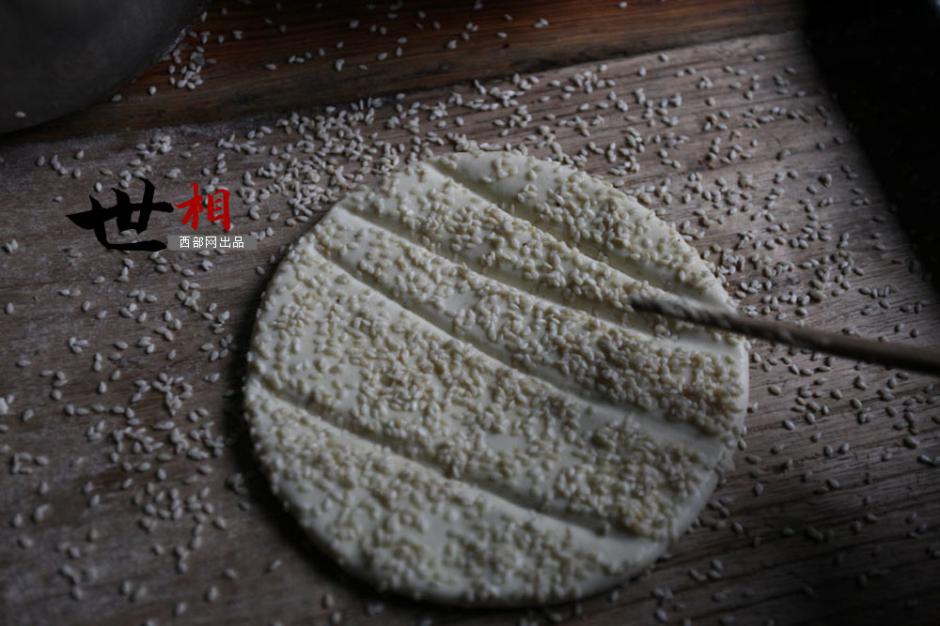 Spread white sesame on the cake and scratch several lines on it. (Photo source: cnwest.com)