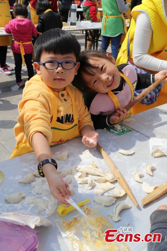 A total of 17,000 people simultaneously make dumplings while watching a cooking class video in 18 places in North China’s Henan province, April 12, 2015. With 4613 participants passing the challenge in the 50-minute long class, it set a Guinness World Record for the largest cooking class. The previous record involved 3,687 people making dumplings in Qingdao, Shandong province, February 14, 2015. (Photo: China News Service/Wang Zhongju)