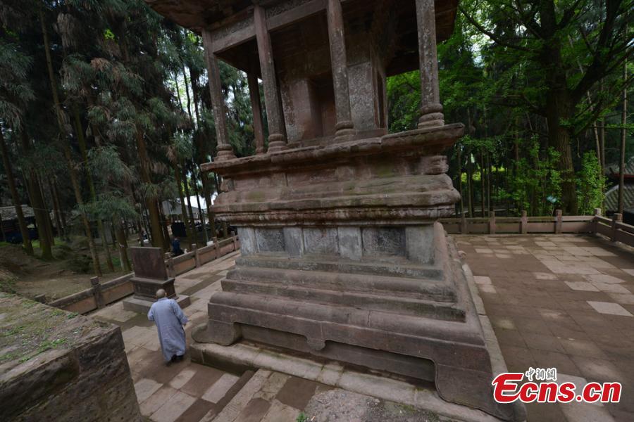 A group of investigators, including Buddhists and archaeologists, inspect a stone pagoda in Qionglai city, Southwest China’s Sichuan province, April 13, 2015. Sources say sarira of Sakyamuni, relics of the Buddha after cremation, is stored in the 800-year-old building. (Photo: China News Service/Zhang Lang)