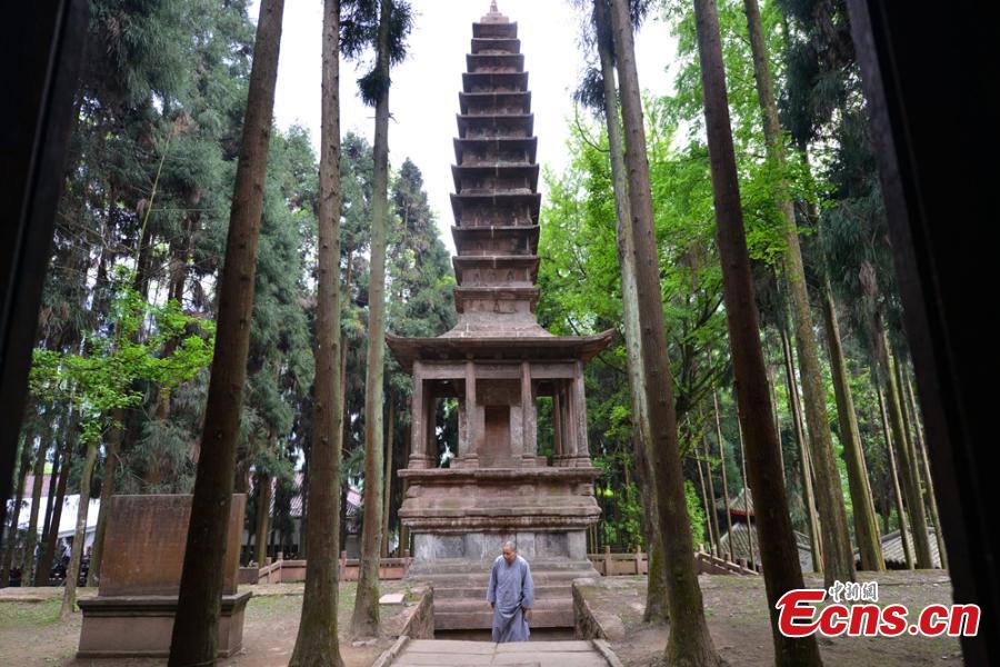 A group of investigators, including Buddhists and archaeologists, inspect a stone pagoda in Qionglai city, Southwest China’s Sichuan province, April 13, 2015. Sources say sarira of Sakyamuni, relics of the Buddha after cremation, is stored in the 800-year-old building. (Photo: China News Service/Zhang Lang)