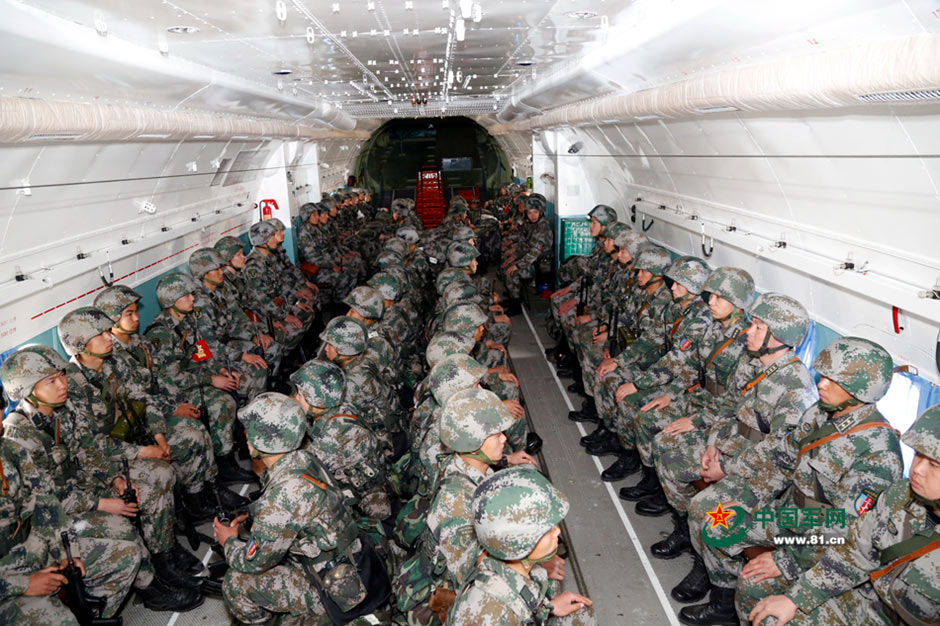 To improve the quick reaction capability, a special operations brigade of Jinan Military Region and an air force unit jointly conduct air transportation training on April 8, 2015.(Photo source: www.81.cn)