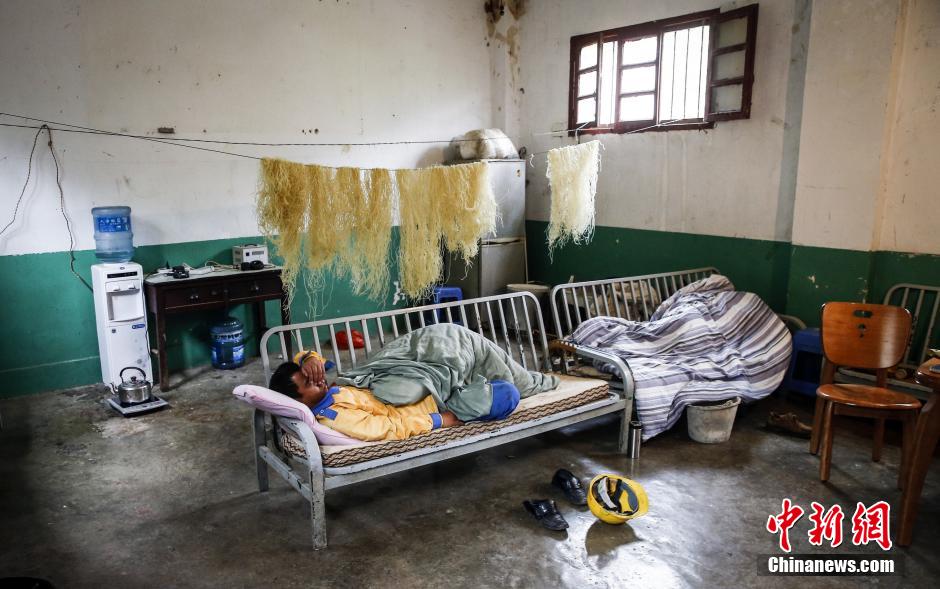 Tired trackwalkers sleep in this room. With heavy equipment and tools on shoulders, they take responsibility of checking and repairing the rails, ensuring safety and eliminating dangerous cases. (CNS/Zhang Hao)