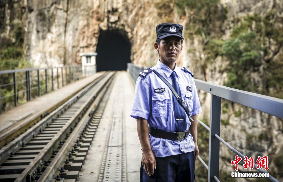Xiong Jun, 35, a guardian of the Yunnan-Vietnam railway, stands on a bridge. (CNS/Zhang Hao)