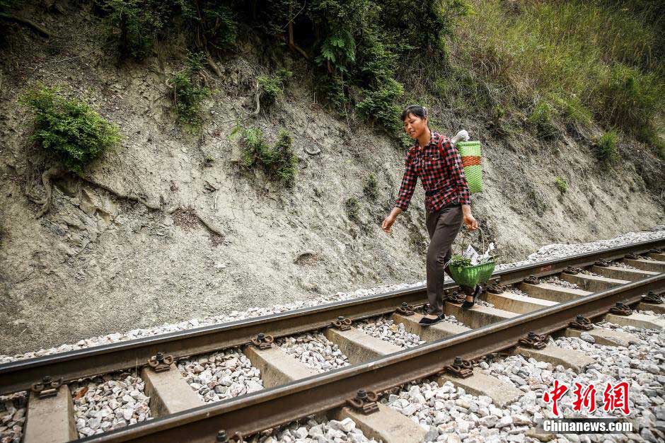 A villager goes to a fair through the Panxi station. (CNS/Zhang Hao)