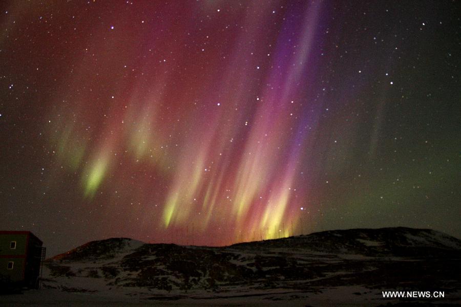 Scenery of aurora above Chinese scientific research base in Antarctica