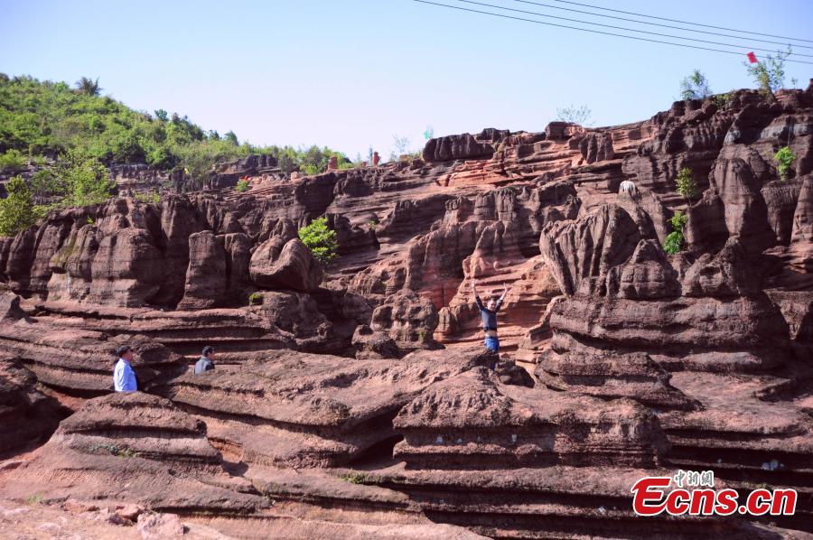 A view of Karst landform composed of red mudstone, valleys, and cliffs in Youyang county, Southwest China’s Chongqing municipality. The area is under development to become a tourist attraction. (Photo: China News Service/Chen Bisheng)