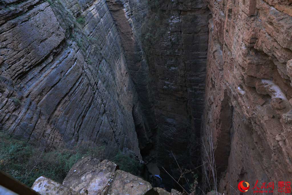 Jiyi Canyon, a natural wonder, lies high above the turbulent Daliang River in Wuding county, southwest China's Yunnan province. It is 12 kilometers long, 200 meters at its widest, 6 meters at its narrowest and 300 meters at its deepest point. (Photo/People.cn)