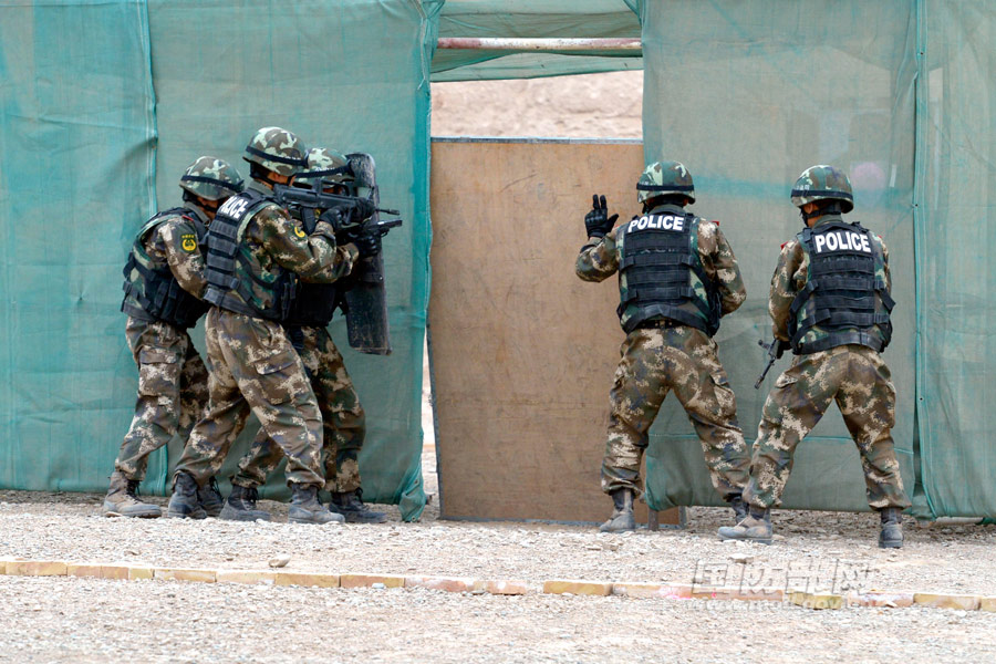The “Lijian Commando” conducts tactical cooperation training in simulated blocks on April 9, 2015. (Photo source: mod.gov.cn)