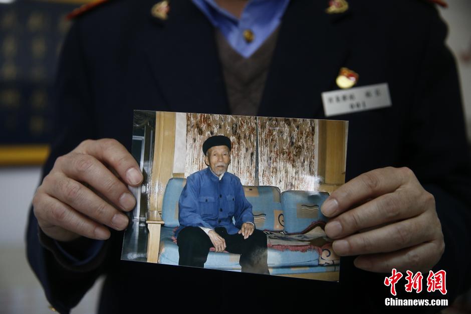 Yang Cunxin holds a photo of his father, who had worked in this station for 31 years until 1982. (Chinanews/Zhang Hao)