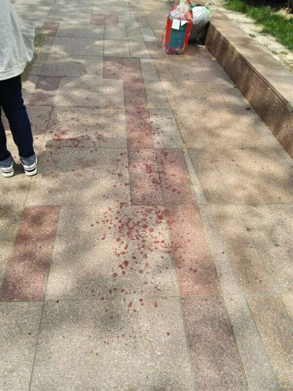A man was caught by police on the scene after injuring two people with a knife on the crowded Nanjing Road Pedestrian Mall this noon. Witnesses reportedly told local media a traffic assistant and a passer-by were stabbed injured. (Photo: Shanghai Daily/Yang Lu)