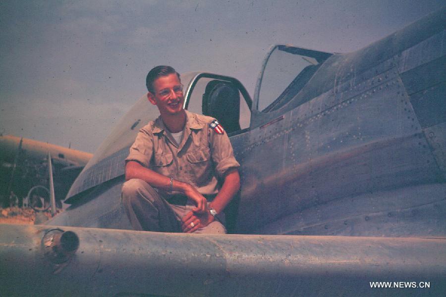 The file photo shows U.S. veteran Joe Day posing for a photo during the Chinese Anti-Japanese War in Zhijiang County, central China's Hunan Province. A museum in Zhijiang Dong Autonomous County of Hunan Province debuted 32 color photos on April 17, 2015 that documented Japan's surrender in the province in August 1945. They were among 223 photos of the Chinese Anti-Japanese War donated last November by Joe Day, a member of the Flying Tigers, the 1st American Volunteer Group formed in 1941 to help China drive out invading Japanese troops. On August 21-23, 1945, Japanese representatives fled to Zhijiang, handed over a map of Japanese troops deployed in China and signed a surrender memorandum. (Xinhua)