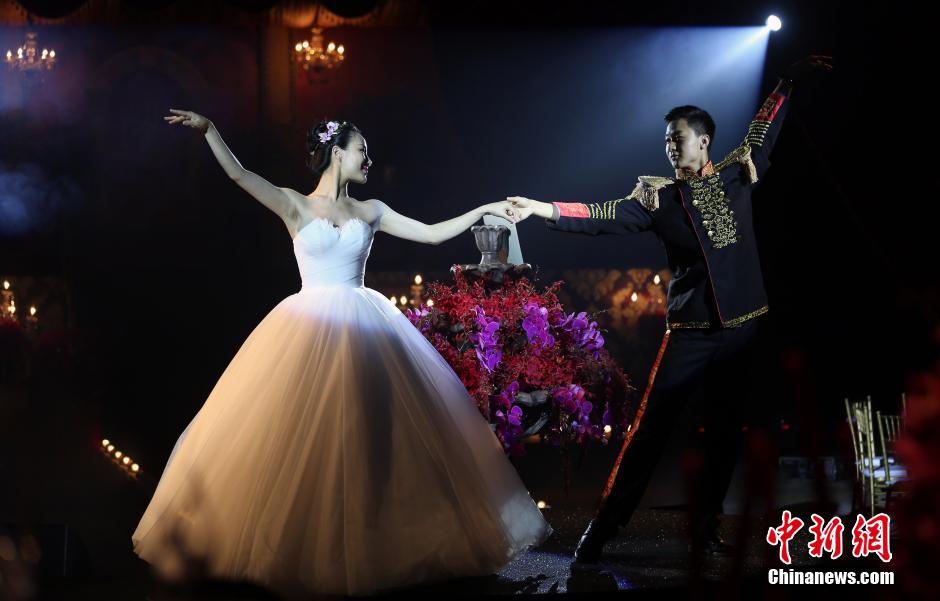 Models dressed in trendy wedding dresses perform a spectacular wedding show in a hotel in Nanjing. (Chinanews/Yang Bo)
