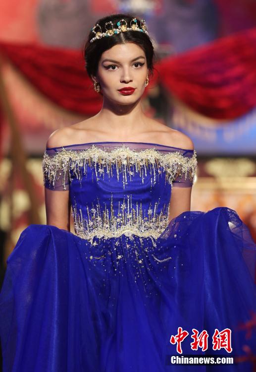 Models dressed in trendy wedding dresses perform a spectacular wedding show in a hotel in Nanjing. (Chinanews/Yang Bo)