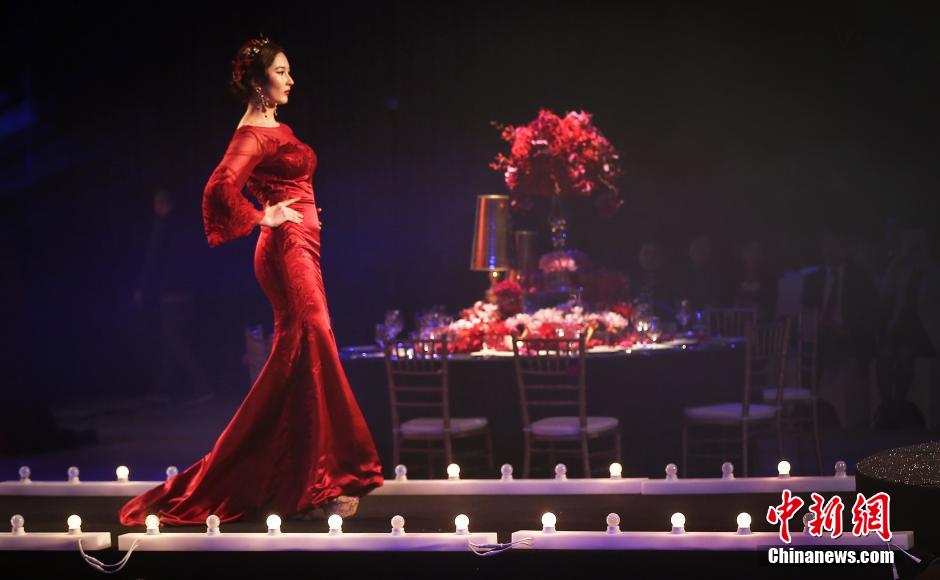 Models dressed in trendy wedding dresses perform a spectacular wedding show in a hotel in Nanjing. (Chinanews/Yang Bo)