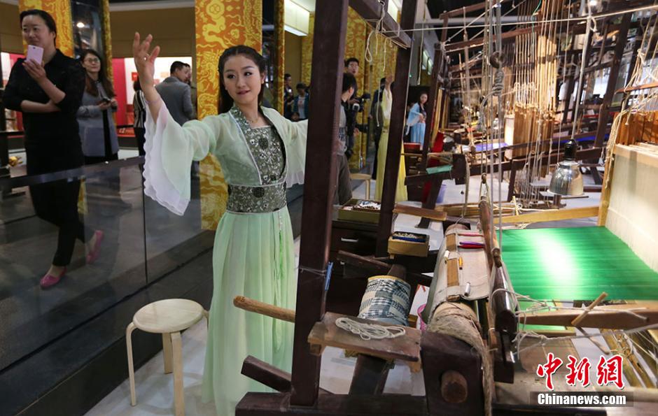 After a two-month renovation, Nanjing Brocade Museum reopens to the public on April 19, 2015. As an intangible cultural heritage of humanity, Nanjing brocade has a history of 1600 years and is one of the four famous brocades of China. The reopened museum puts much emphasis on introducing the production procedure of Nanjing brocade and displaying the choicest goods of China’s silk brocades. (Chinanews/Yang Bo)